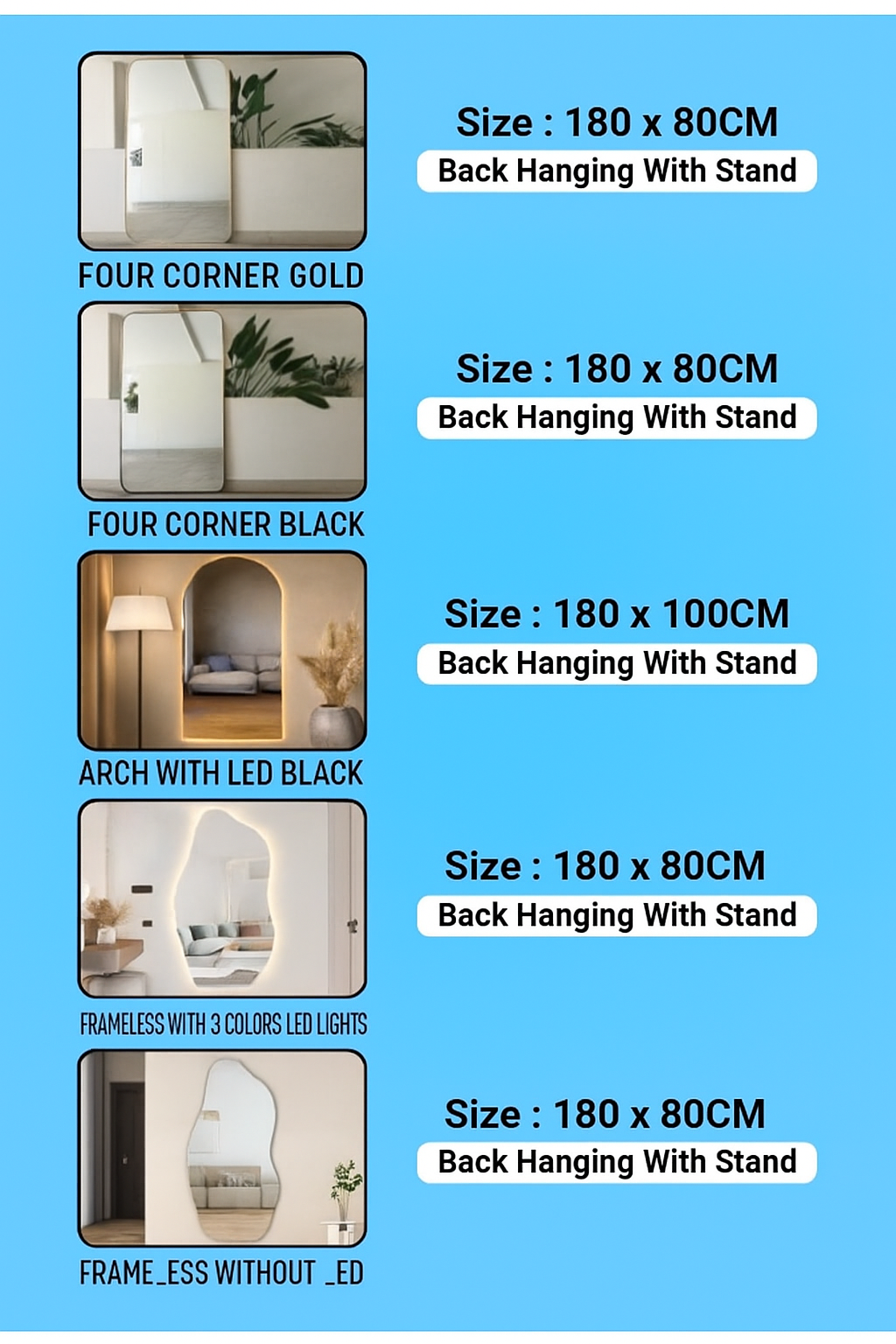 Whether for home vanity tables, office desks, salons, or hotel suites, our mirrors are tailored to your needs — ensuring perfect proportions, flawless reflection, and elegant finishing.